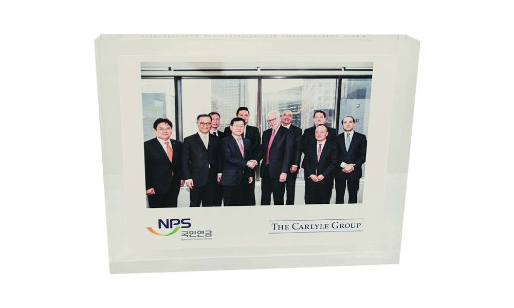 But a standalone piece incorporating a photograph, especially a crystal piece to be displayed on a bookshelf or desk, tends to stand out from wall ornaments. These designs also have the advantage of being easy to display in areas where wall space may limited, such as in reception areas or conference rooms.