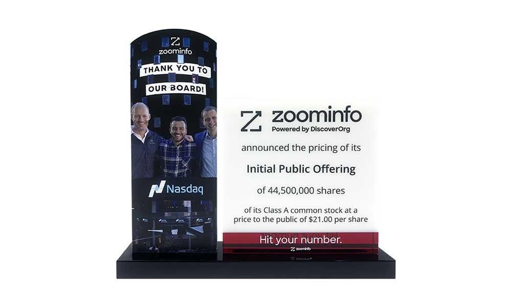 By contrast, look at the Lucite commemorative piece above. There’s nothing particularly striking about the design. In fact, it looks like a rectangular, acrylic block.