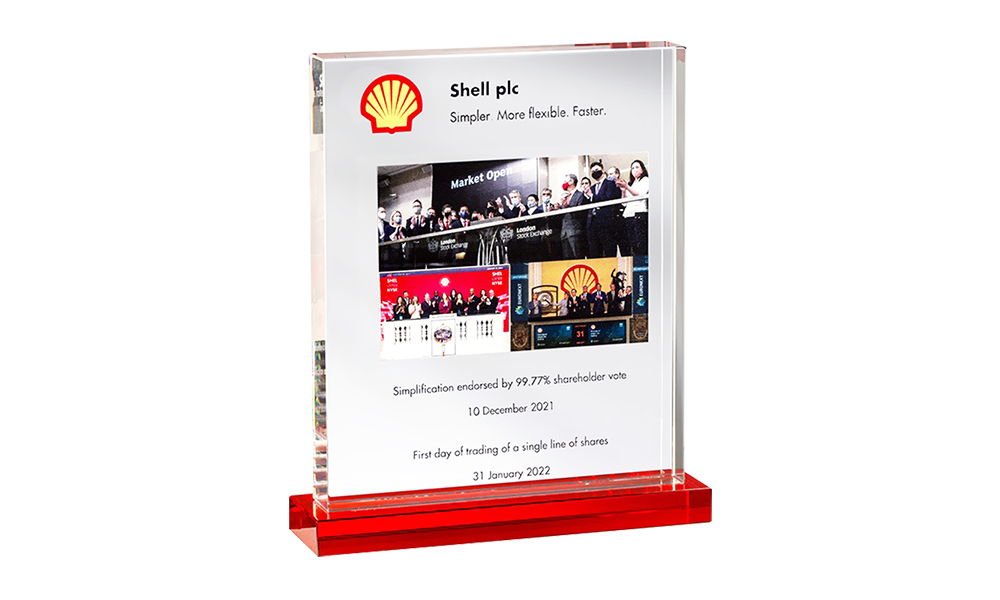 In instances in which that product is the subject of the achievement or event a Lucite embedment can deliver the same perceived value and cachet. These occasions would obviously include product launches and product development milestones.