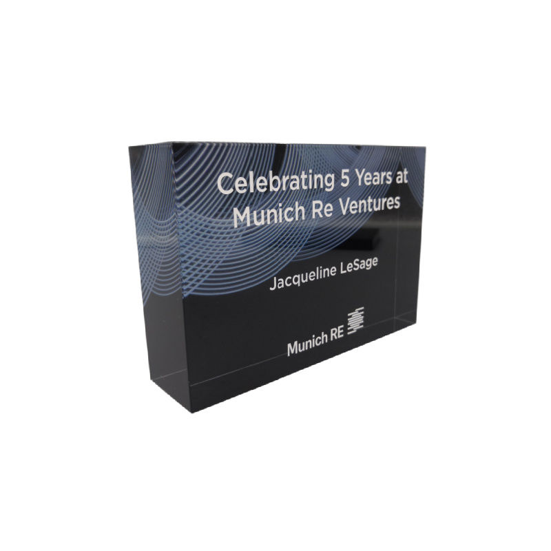 Custom crystal marking 5 years of service at Munich Re Ventures. (20ALJ401)